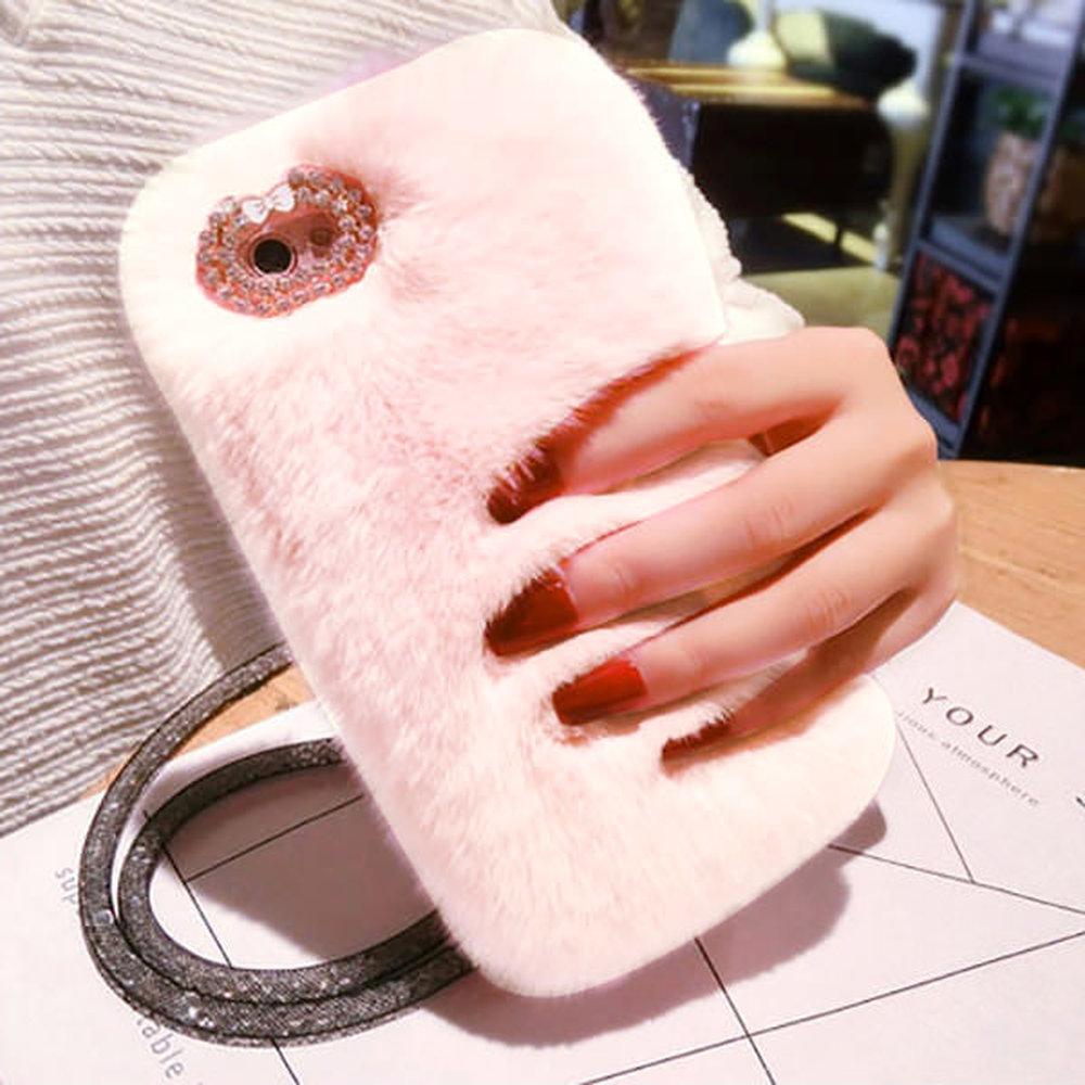 Amazon Com Plush Case For Iphone 5 5s Se Lapopnut Luxury Furry Fluffy Case Soft Faux Fur Fuzzy Mittens Design Cover With Bling Glitter 3d Diamond Bowknot Protective Case For Girls Pink