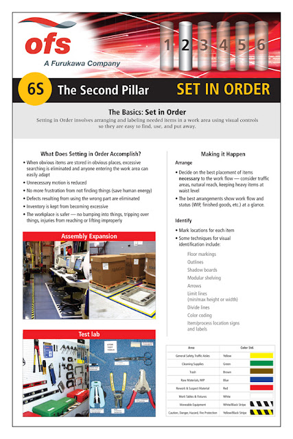 We have been doing 6S (5S +Safety) dating back to 03 and as part of the early stages of implementation we made posters. 5S - Everything in its Place Poster. Post on walls in key locations to provide a daily visual reminder;.