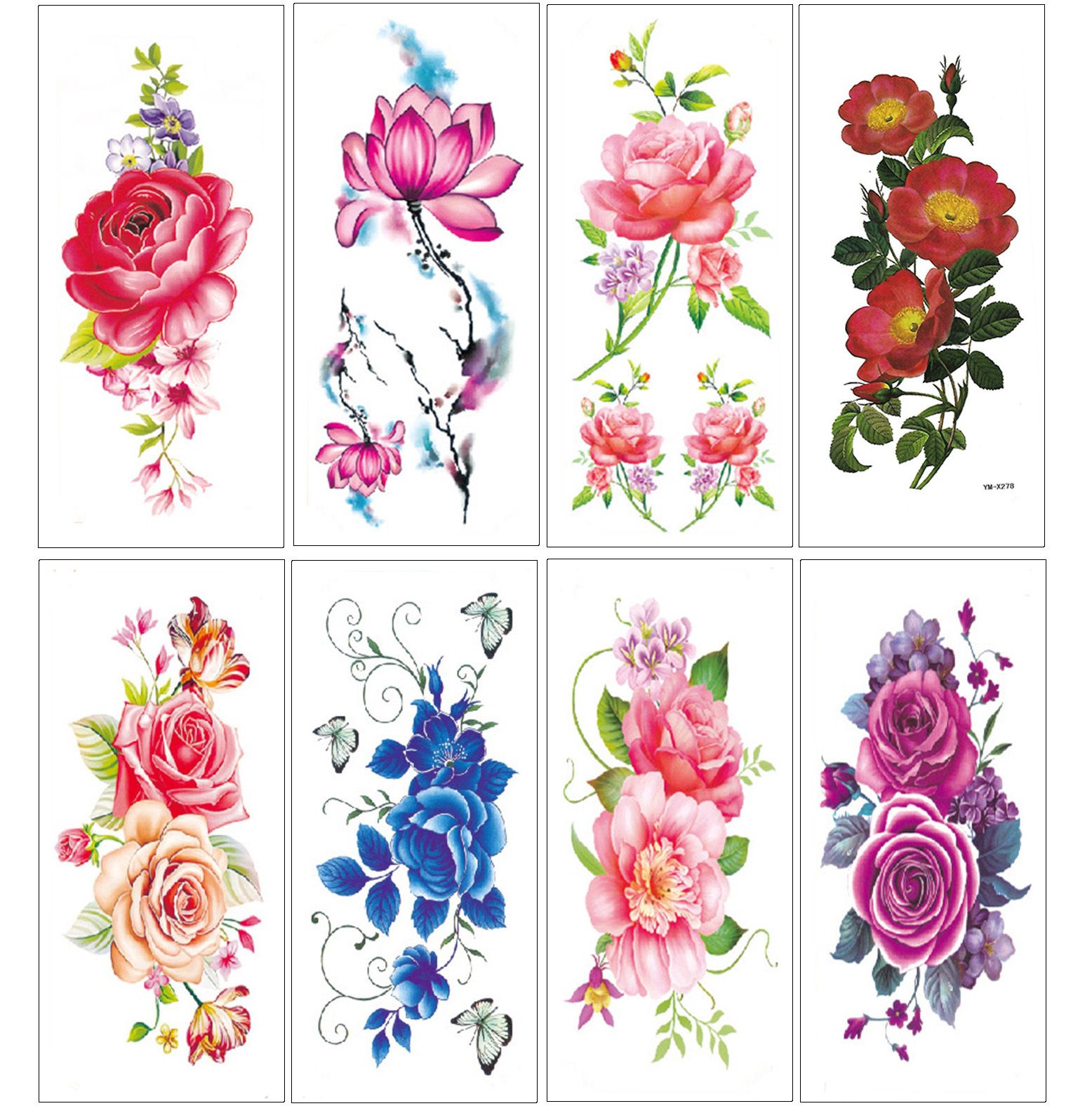 8pcs 3d Tattoo Sleeve Waterproof Temporary Tattoos Colorful Flowers Rose Lip Body Art Diy Tattoo Stickers On The Body 8styles Tattoo Sticker Rose Lip3d Tattoo Aliexpress