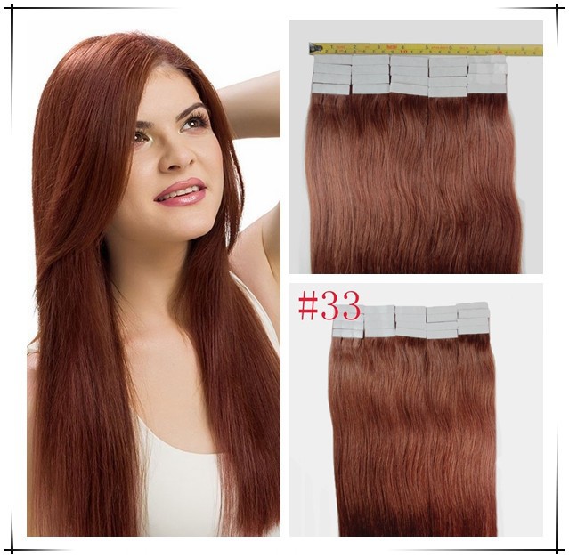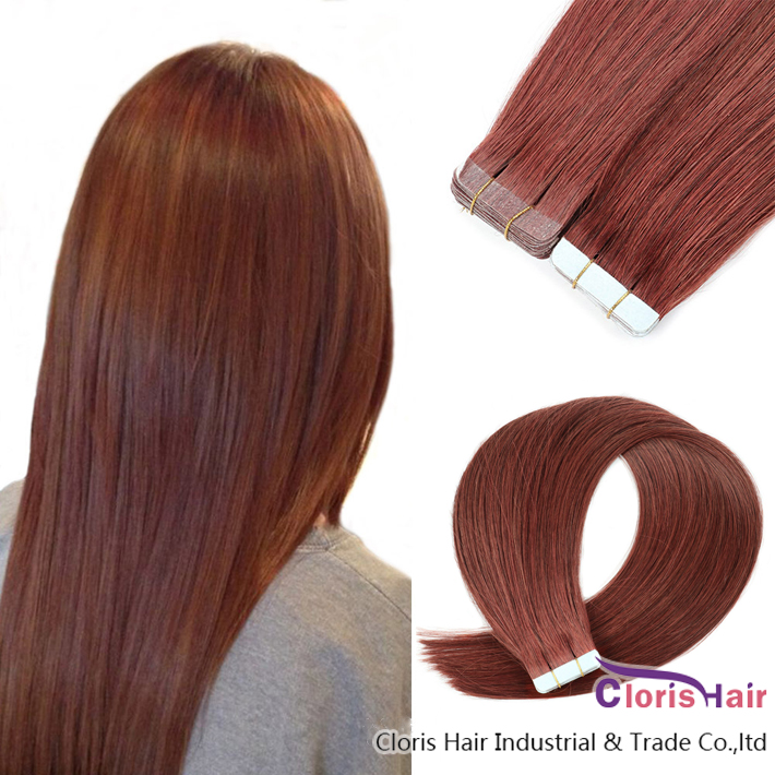 Amazon Com Tape In Human Hair Extensions 33 Dark Auburn Double Sided Seamless Skin Weft Silk Straight Remy Hair Glue In Extensions Beauty