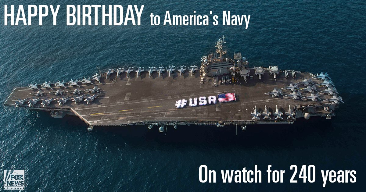 On October 13, 1775, the fledgling United States Navy was commissioned by the Continental Congress to offset and harass the powerful British Royal Navy. Happy birthday to the US Navy!. “Happy birthday to one of the nicest people I have ever met.
