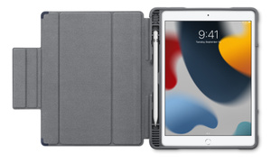 The hard internal shell, soft outer slipcover and built-in screen protector deflect everyday action and accidents. Offers comfortable typing ands hands free viewing angles. And, the included shield stand enables hands-free viewing and comfortable typing.