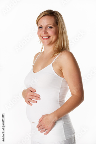 Studio Portrait Of 4 Months Pregnant Woman Wearing White License Download Or Print For 12 00 Photos Picfair