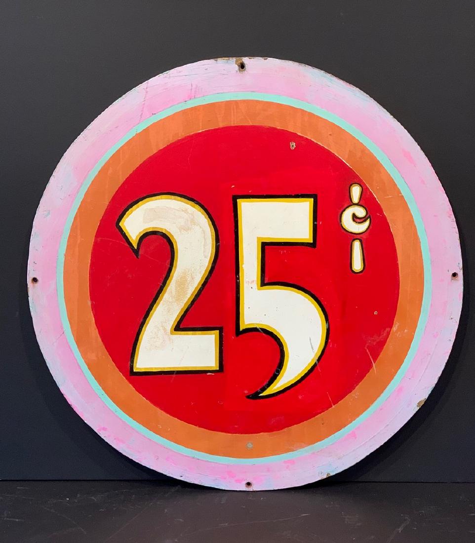 Vintage Carnival Game Sign 25 Cents Hand Painted On Wood
