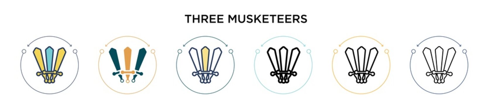 Try these curated collections. Illustration about Three musketeers icon vector isolated on white background, logo concept of Three musketeers sign on transparent background, filled black symbol. The Three Musketeers (French:.