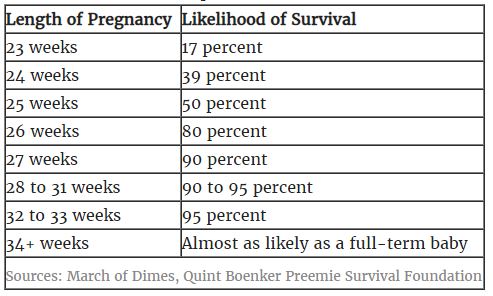 Is This Chart True For Survival Of Preemies Per Week Babycenter