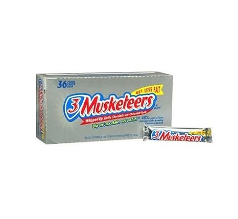 Order online today and get fast, free shipping for your business. Makes 14 candy bars. “3 Musketeers is one of my all time favorite candy bars, they are light and fluffy and have just the right amount of chocolate.” in reviews “I have braces and had just recently gotten my bands tightened so I was looking for a chocolate bar that was soft and didn't have anything crunchy in it but was still tasty and 3 musketeers did not disappoint!” in reviews.