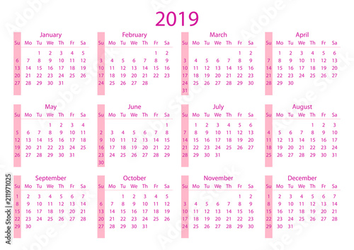 Calendar 19 Calendar Grid 19 Year Pink On White Background Sunday Starts Vector Illustration Ai10 Buy This Stock Vector And Explore Similar Vectors At Adobe Stock Adobe Stock