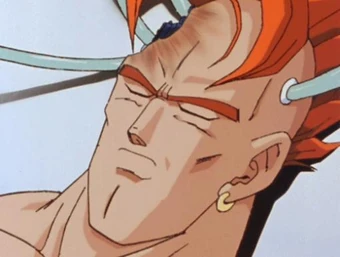 He has icy blue eyes, a red/orange mohawk, and gold hoop earrings. This time the brave figure in the cell game is lined up. Check out our Android 16 selection for Dragon Ball Z enthusiasts.