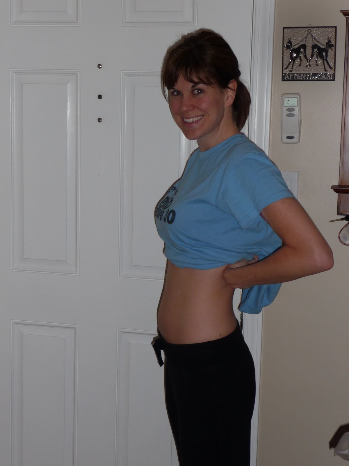 You won’t see any noticeable difference in belly size until near the end of the first trimester. Week 4 Pregnancy Update!. Early Pregnancy Symptoms and belly shot.