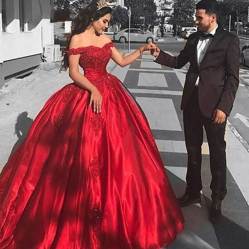 Off Shoulder Appliques Red Ball Gown Prom Dresses Sexy Quinceanera Dresses Sweet 16 Dresses On Luulla