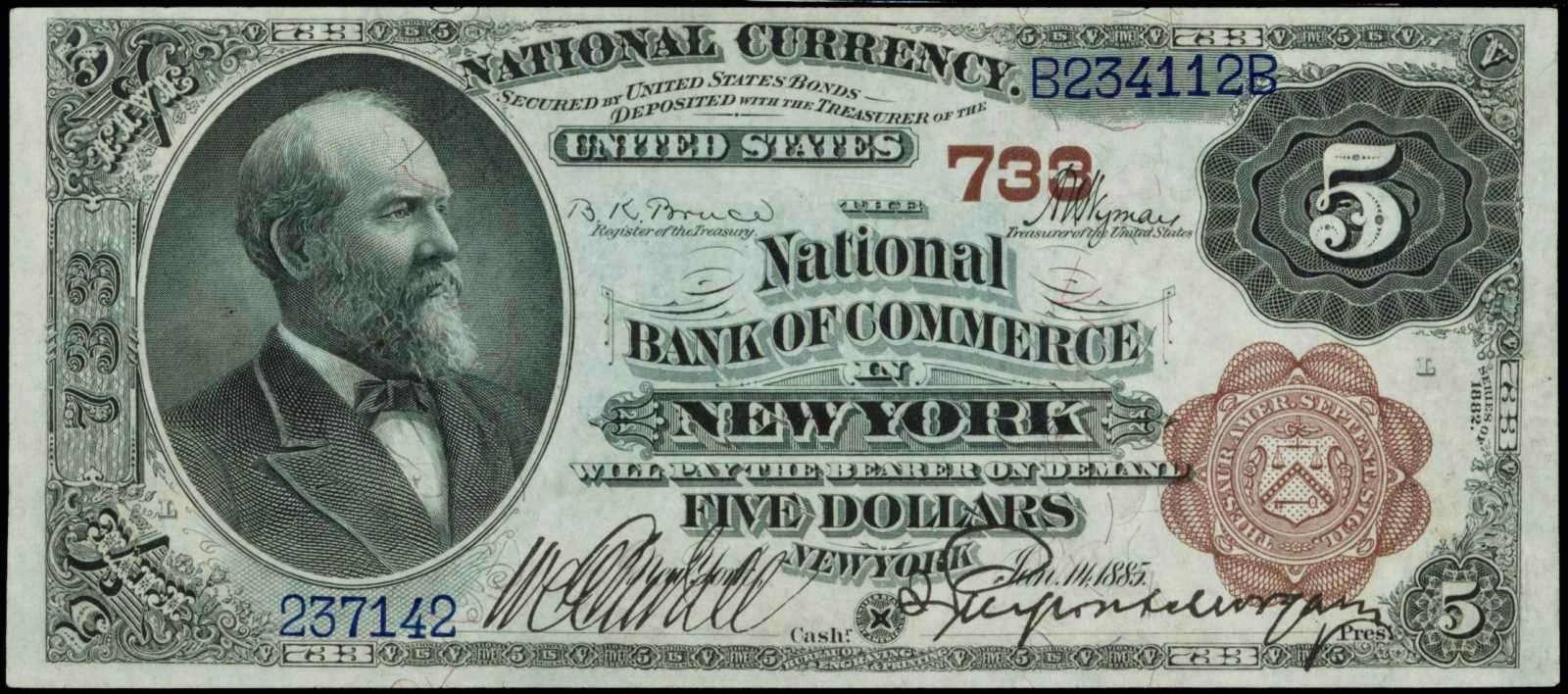 World Banknotes Coins Pictures Old Money Foreign Currency Notes World Paper Money Museum 18 Five Dollar National Currency Brown Back 733 The National Bank Of Commerce In New York