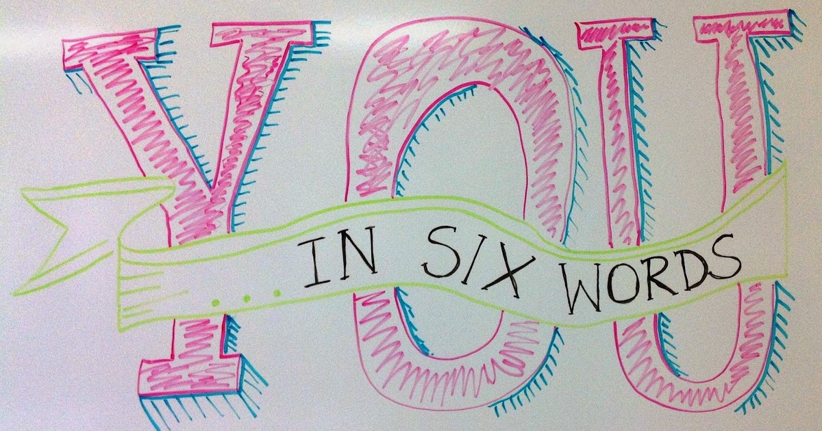 I have been thinking of having the kids describe themselves in 6 words since break, when the 6 word memoir idea was being bounced all over Pinterest, Twitter, and Facebook. This six word memoir‘s brevity hints at a deeper tale. You chose six powerful words that when placed together, create a clear message to the reader- good use of specific nouns and vivid verbs.